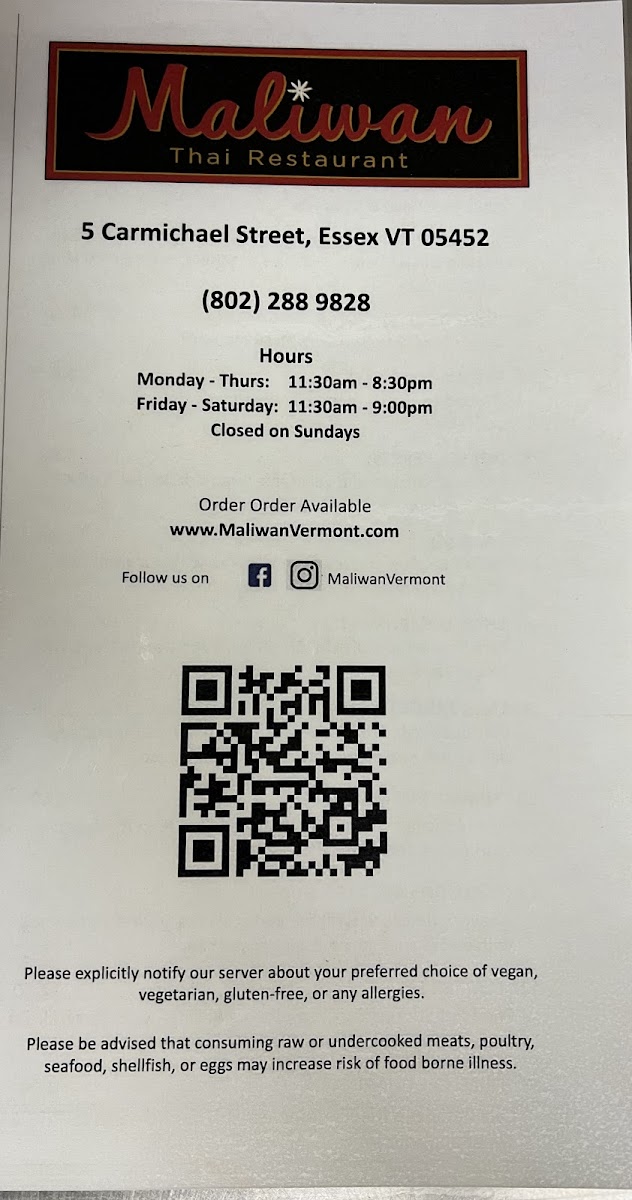 If you’re browsing the Maliwan Thai Restaurant Menu, get ready for the kind of dishes that make it hard to choose just one. Tucked away at 5 Carmichael St in Essex, VT, this spot brings bold Thai flavors right to your table, and the variety is half the fun. You’ll find comforting classics like Pad Thai and Drunken Noodles, rich curries simmered in coconut milk, and stir-fries loaded with crisp vegetables and fragrant basil.